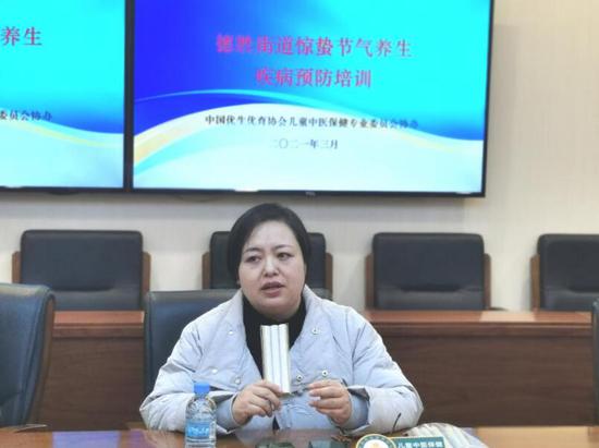 2021年3月3日,中国优生优育协会儿童中医保健专业委员会执行会长王秀琴(牛妈)来到北京市西城区德胜街道为街道社区工作人员做了一场关于惊蛰节气养生疾病预防培训的公益活动,以自己的实际行动持续为街道社区公益贡献力量,北京市西城区德胜街道社区建设办副主任吴红主持培训活动。