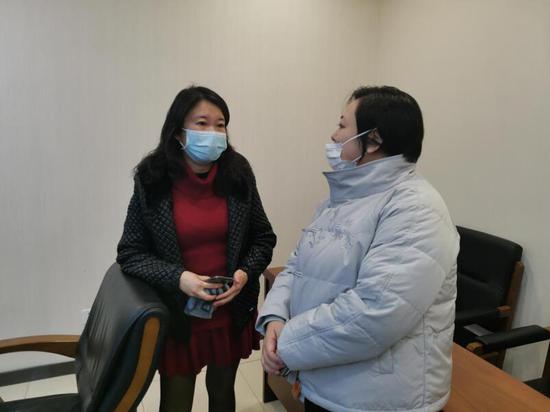 德胜街道社区建设办副主任吴红与王秀琴(牛妈)亲切交谈